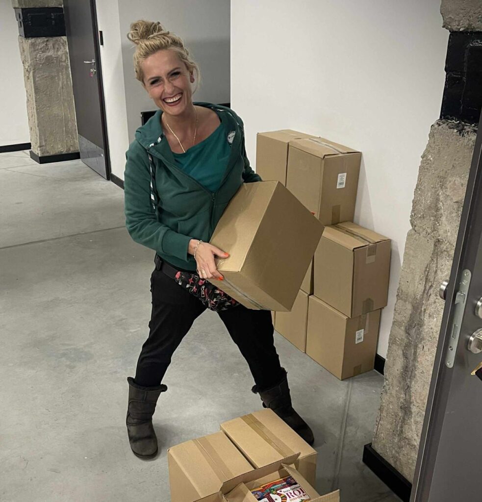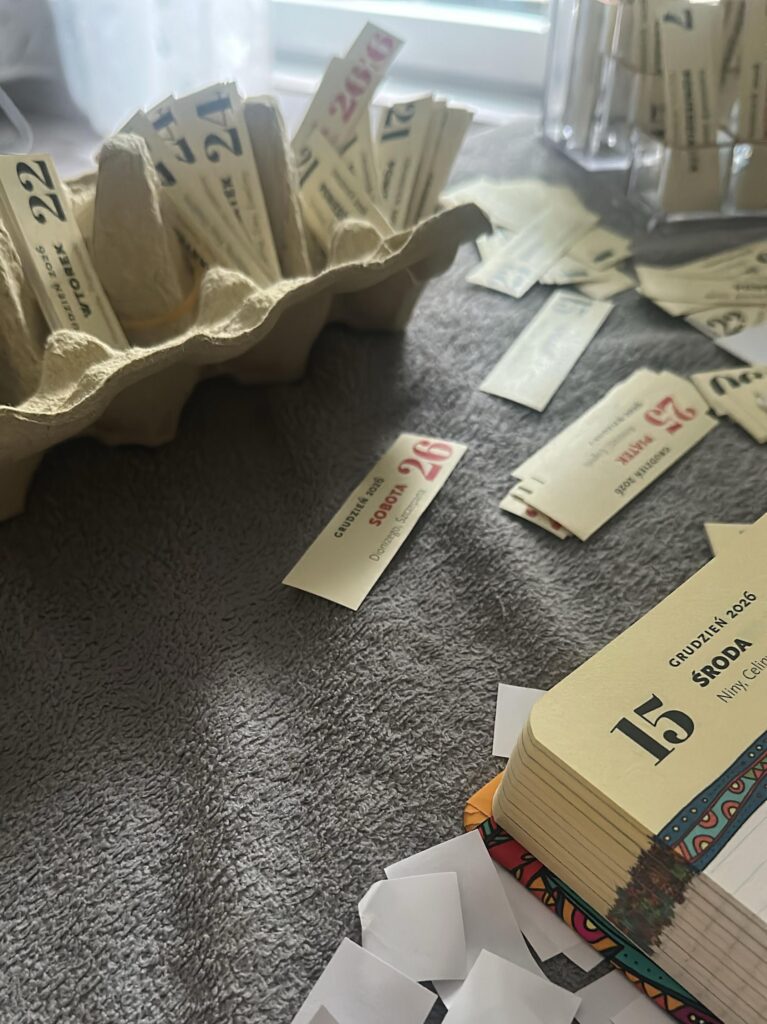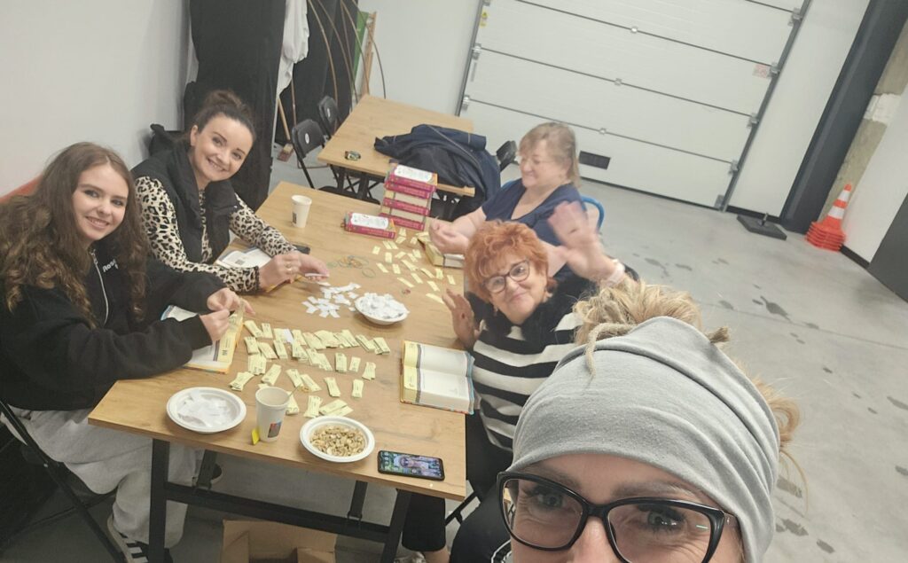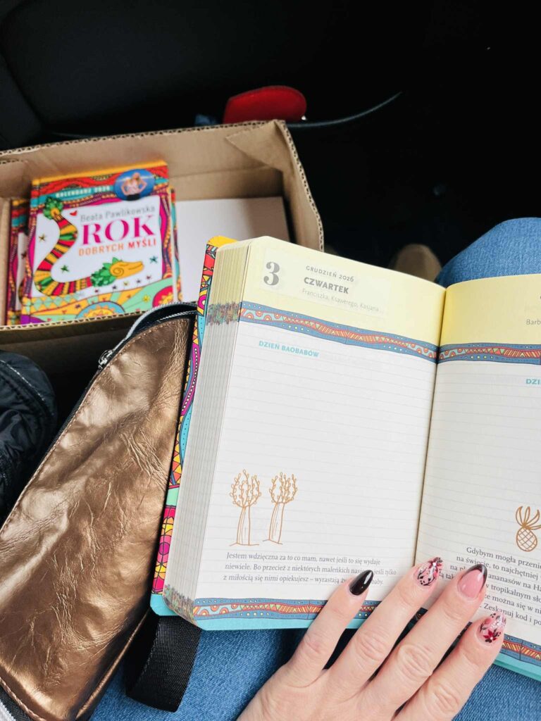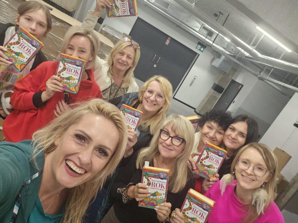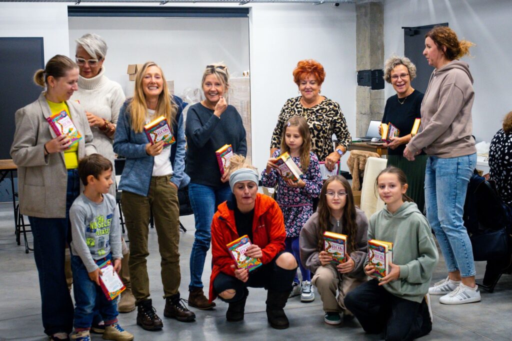 Wielka spontaniczna akcja, do której włączali się ochotnicy z różnych miast w Polsce. Pan Waldemar rozwoził samochodem kartony z książkami. Codziennie wieczorem do ośrodka akcji w sali Carbonarium udostępnionej bezpłatnie przez Instytutu Dziedzictwa i Dialogu – Łaźnia Moszczenica w Jastrzębiu-Zdroju przychodzili ochotnicy, czasem całymi rodzinami i siadali do stolików w niezwykłej atmosferze wsparcia, radości, wspólnoty. Niektórzy pomagali w swoich domach, a nawet w samochodach! Z całego serca dziękuję wszystkim osobom, które włączyły się do akcji i zasiliły najnowszy kalendarz niezwykłą mocą swojego serca. Niech ta moc zostanie z Wami!