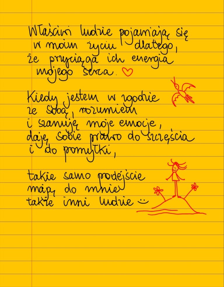 Szłam polną drogą na skraju lasu i zobaczyłam wielką brzozę. Biała kora, zielone listeczki poruszane przez wiatr, łagodny, przyjazny szelest. Zatrzymałam się. Przytuliłam policzek do kory. I czoło. Objęłam brzozę ramionami i cała się do niej przytuliłam. Zamknęłam oczy i…