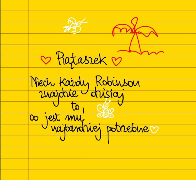 Piątaszek. Niech każdy Robinson znajdzie dzisiaj to, co jest mu najbardziej potrzebne 😀❤ #żółtakartka