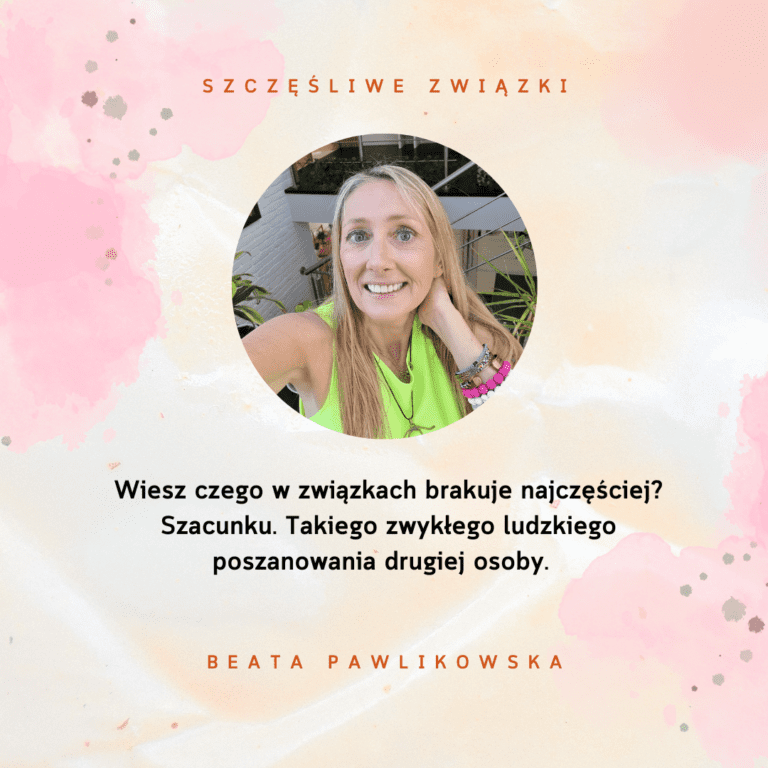 Wiesz czego w związkach brakuje najczęściej? Szacunku. Takiego zwykłego ludzkiego poszanowania drugiej osoby. Takiego szacunku, jaki masz wobec kogoś, kogo spotykasz po raz pierwszy i uważasz za kogoś ważnego. Na przykład kiedy słyszysz inspirującą historię człowieka, który mimo chorych nóg…