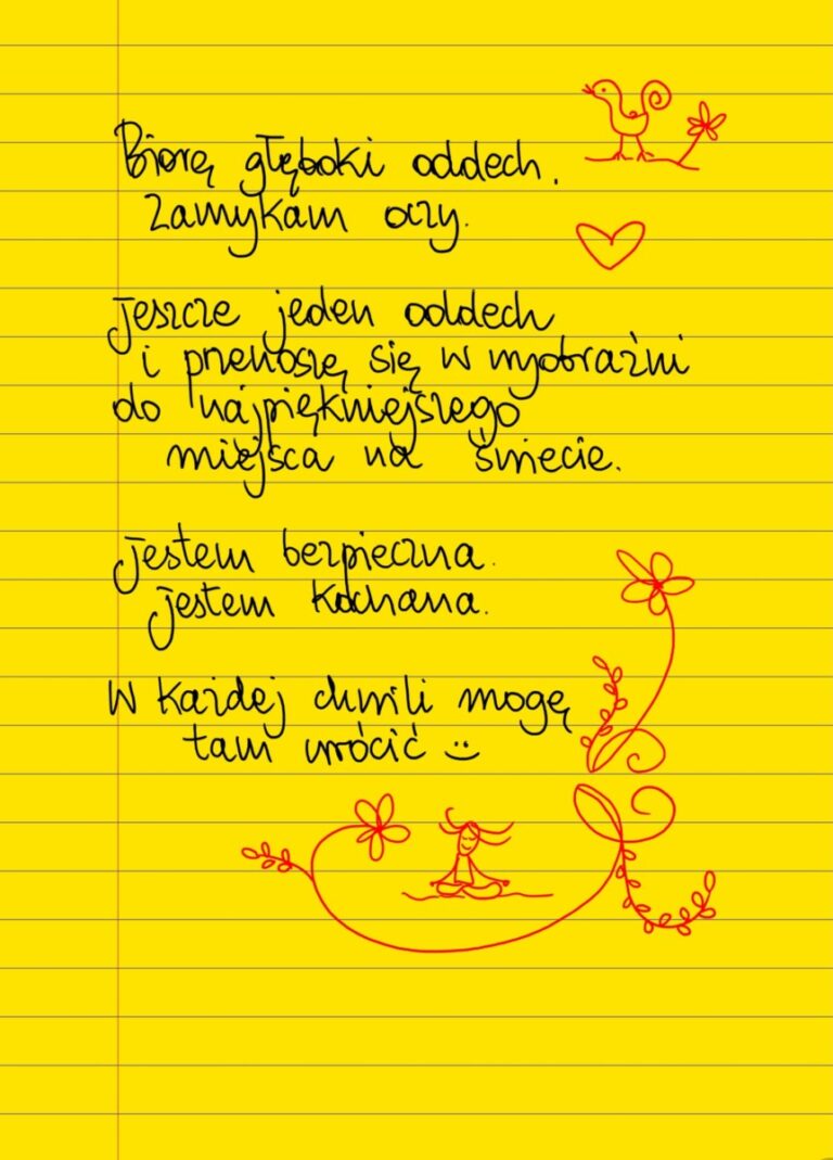 Biorę głęboki oddech. Zamykam oczy. Jeszcze jeden oddech i przenoszę się w wyobraźni do najpiękniejszego miejsca na świecie. Jestem bezpieczna. Jestem kochana. W każdej chwili mogę tam wrócić 🙂 #żółtakartka