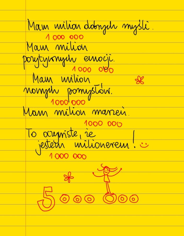 Mam milion dobrych myśli. Mam milion pozytywnych emocji. Mam milion nowych pomysłów. Mam milion marzeń. To oczywiste, że jestem milionerem! #żółtakartka