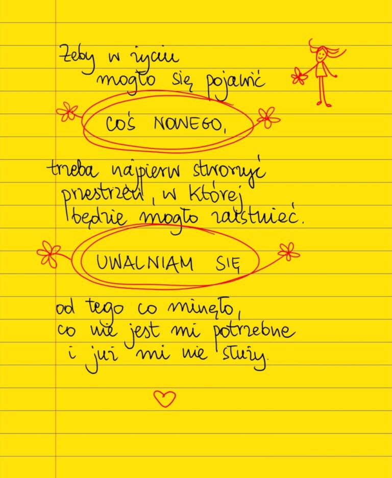 Żeby w życiu mogło się pojawić COŚ NOWEGO, trzeba najpierw stworzyć przestrzeń, w której będzie mogło zaistnieć. UWALNIAM SIĘ od tego co minęło, co nie jest mi potrzebne i już mi nie służy. #żółtakartka