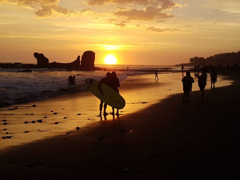 Poranek na plaży w El Tunco w Salwadorze nad Oceanem Spokojnym