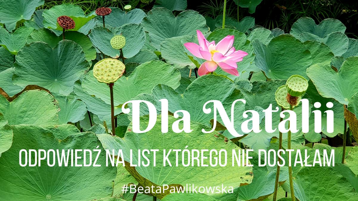 Jak zaakceptować chorobę, która zmienia życie? Dlaczego to się przytrafia? Jak odzyskać nadzieję, że życie ma sens? Odpowiedź na list, którego nie dostałam i na pytanie, którego mi nie zadała osiemnastoletnia Natalia, której historię poznałam na portalu https://www.siepomaga.pl/dla-natalii .