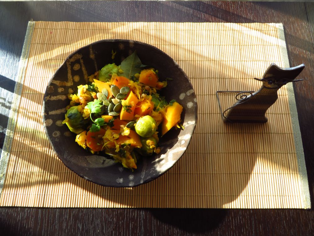 (O) W garnku zagotuj nieco ponad szklankę wody (Z) Marchewkę obierz, umyj, pokrój w plasterki i dodaj do wody. Dodaj też umytą brukselkę, obraną z luźnych, nieświeżych zewnętrznych listków Wymieszaj, gotuj przez co najmniej minutę (M) Dodaj liście laurowe, ziele…