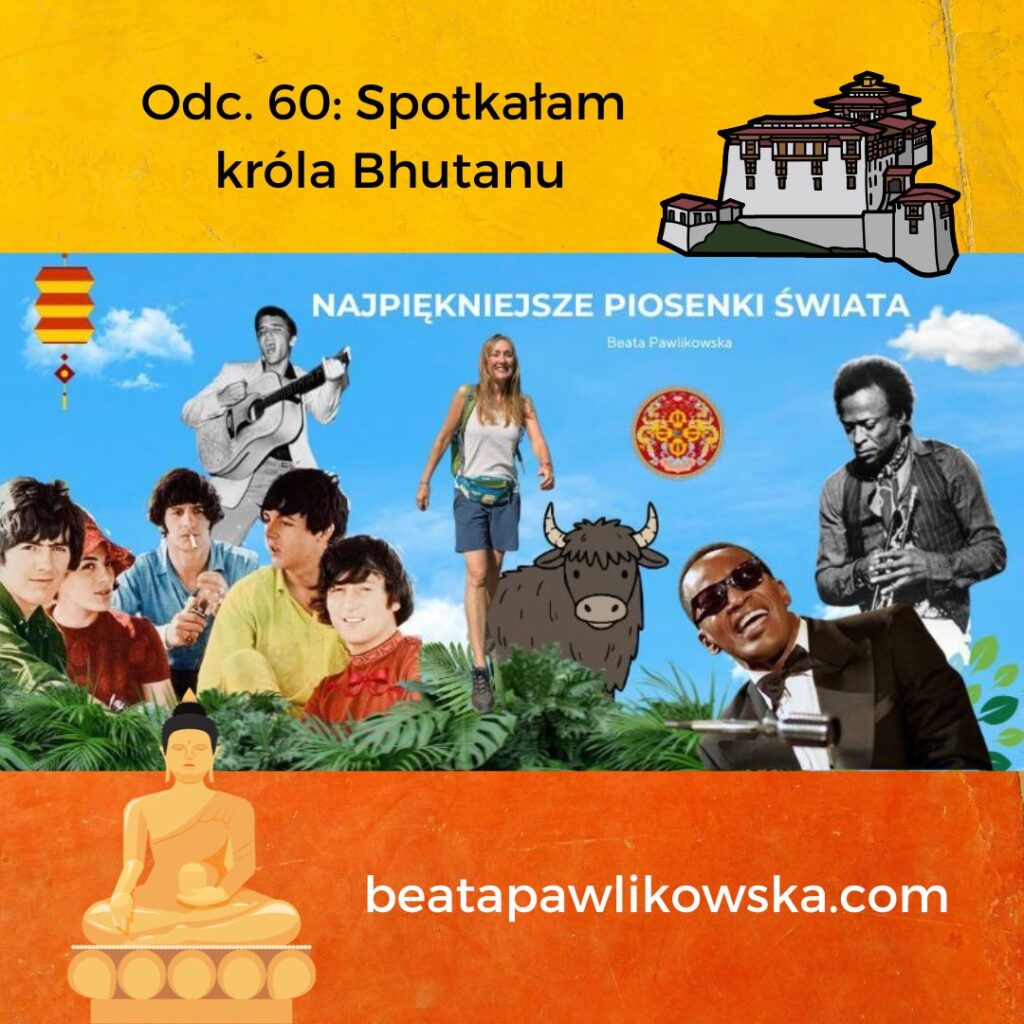 Bhutan, buddyjskie królestwo w Himalajach. Jedyny kraj na świecie, gdzie liczy się narodową ilość szczęścia na głowę mieszkańca zamiast dochodu narodowego brutto. Nie ma reklam, wszystkie owoce, warzywa i jajka są organiczne. Nie wolno używać pestycydów ani palić papierosów. W całym kraju nie ma ani jednego skrzyżowania ze światłami. Opowiem dzisiaj o życiu w tym niezwykłym kraju, o zwyczajach kulinarnych, klasztorach, mnichach, a także o tym jak osobiście spotkałam króla Bhutanu. Relacje bezpośrednio z podróży po Bhutanie. Muzycznie: k.d.lang, Keb’Mo’, Donna Summer, Marek Grechuta, Michael Buble & Nelly Furtado, Sting.