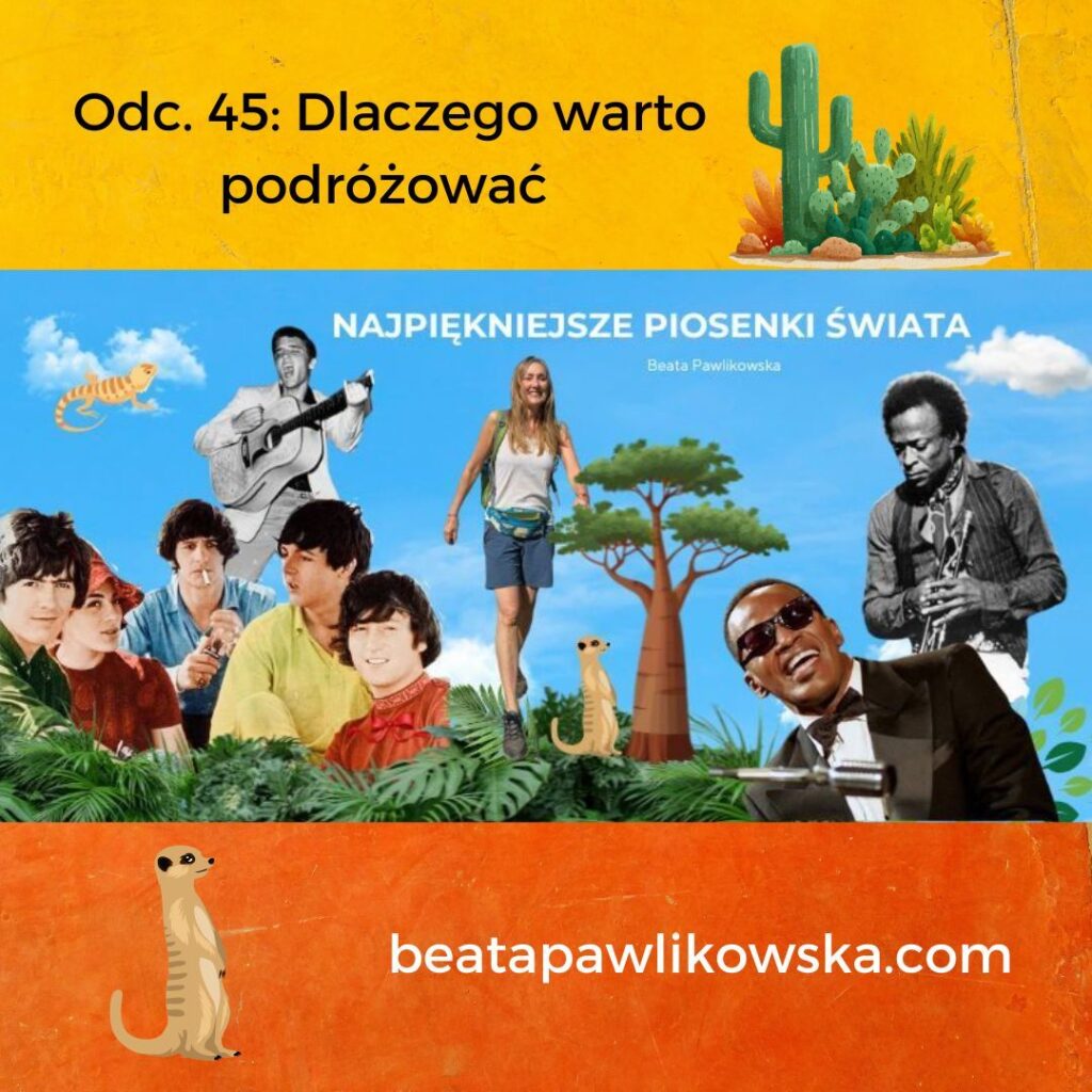 O tym jak podróże zmieniają życie, o wyprawie do Afryki, o tym, co jest niemożliwe do zaplanowania i przewidzenia, a samo nas znajduje, o tym dlaczego przestałam łowić ryby, o lodówce Lenny’ego Kravitza i o odkrywaniu nowej rzeczywistości. Muzycznie: Toto, Tinariwen, Dire Straits, Lenny Kravitz, Carrapicho, Roberto Carlos, Diego El Cigala, Rosario Flores, Gipsy Kings.