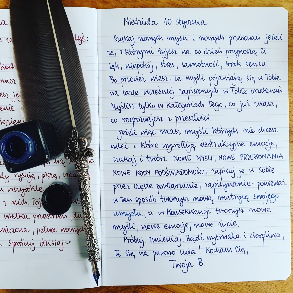 Jeżeli więc masz myśli, których nie chcesz mieć i które wywołują destrukcyjne emocje, szukaj i twórz NOWE MYŚLI, NOWE PRZEKONANIA, NOWE KODY PODŚWIADOMOŚCI, zapisuj je w sobie przez częste powtarzanie, zapisywanie – ponieważ w ten sposób tworzysz nową matrycę swojego umysłu, a w konsekwencji tworzysz nowe myśli, nowe emocje, nowe życie.