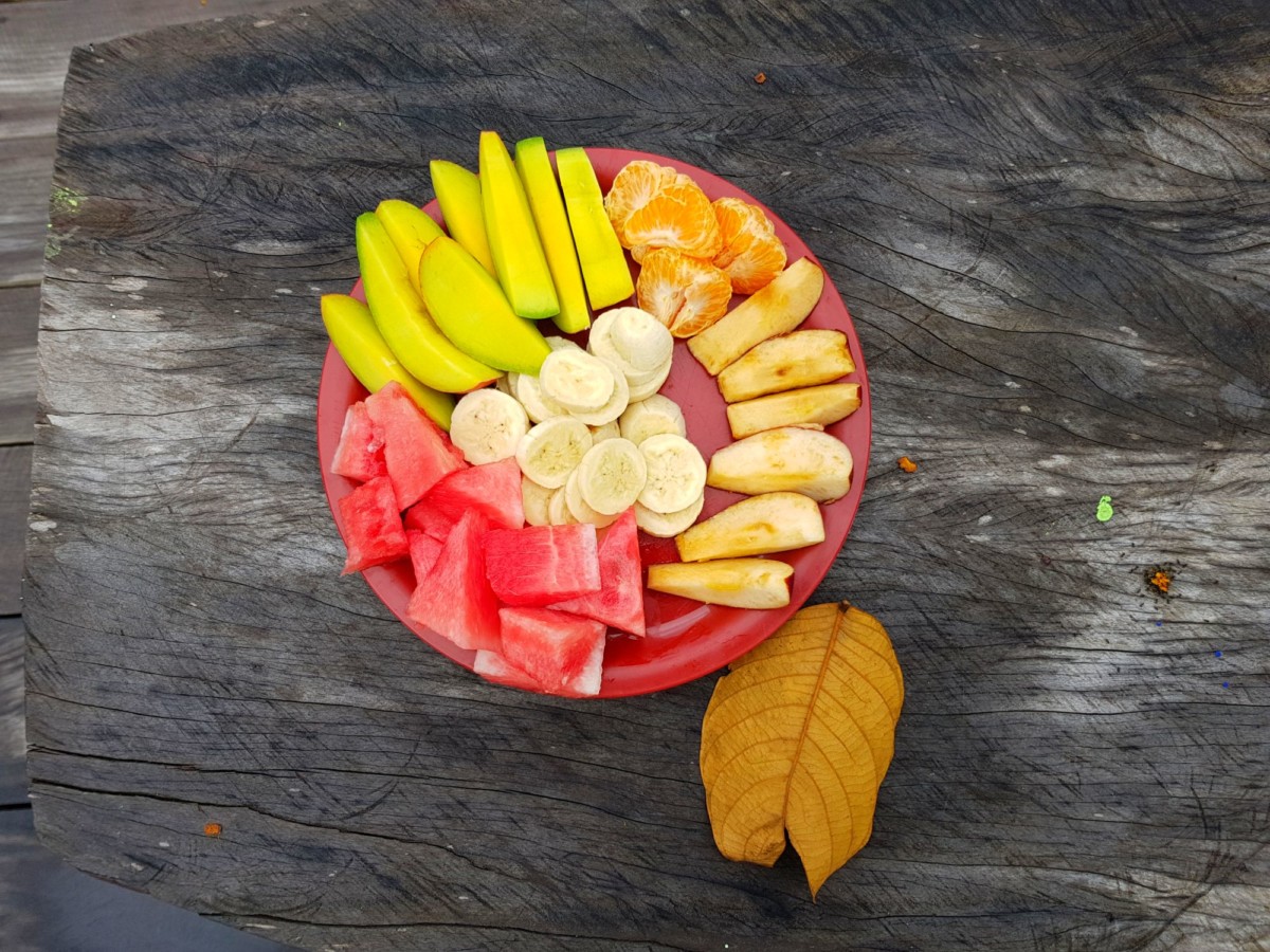 Zapas owoców przygotowany na czas wyprawy do dżungli – banany, papaje i arbuzy