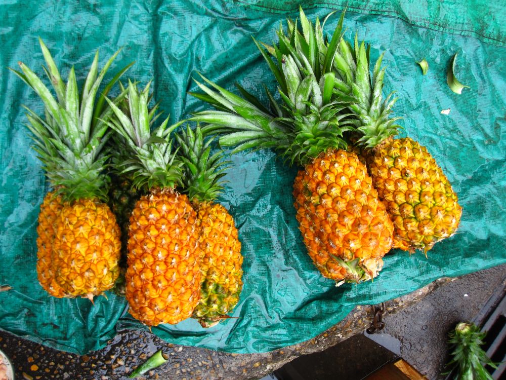 Dojrzałe ananasy na chodniku w Manaus, Brazylia