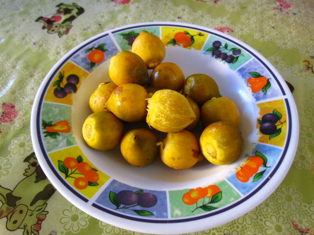 Pupuña, owoc palmowy, niejadalny na surowo, po ugotowaniu w smaku przypomina ziemniaki, Wenezuela.