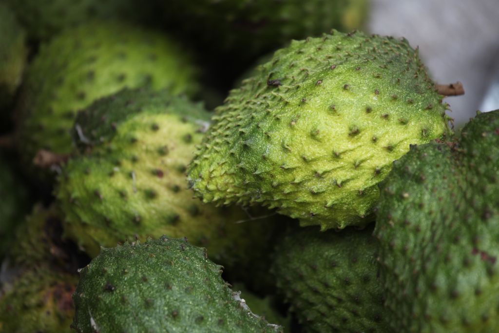 Guanabana, flaszowiec. Pod zieloną skórką kryje się miękki, kremowy, biały miąższ o delikatnym smaku