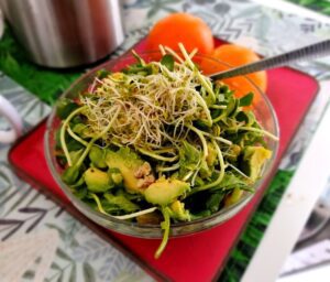 Wymyśliłam ją wczoraj, zrobiłam i okazała się pyszna! Potrzebny będzie kawałek białej kapusty, słodkie, soczyste jabłko, marchewka, czerwona cebula i garść rodzynek. Taka surówka świetnie pasuje do obiadu i może być równie dobrze samodzielnym daniem na lekki lunch albo kolację.