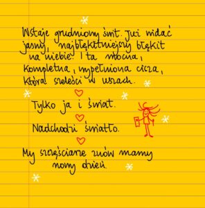 Wszystko,  co ma przetrwać i rosnąć, wszystko, co jest twoim przeznaczeniem, co jest piękne i jest Ci pisane, na pewno się zdarzy. Nie martw się. Tak czy inaczej znajdziesz w życiu to, co jest cudne, wartościowe i dla ciebie najlepsze. PS Dziękuję Mikołajowi za blok do rysowania 😊